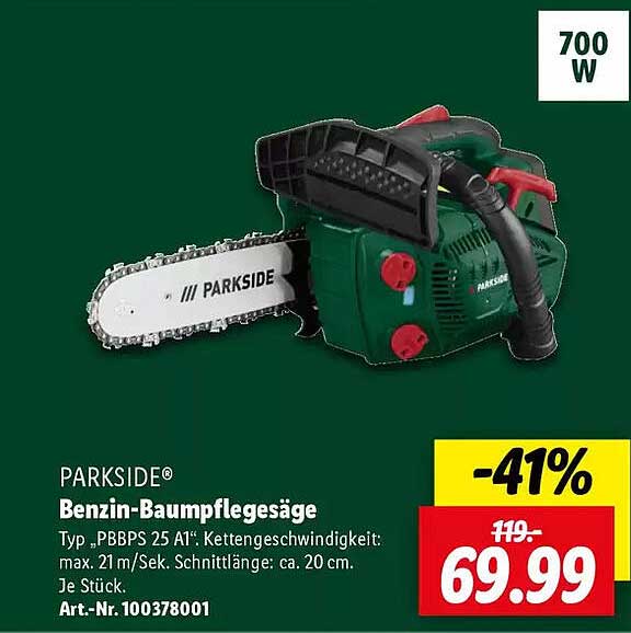 Entdecken Sie das großartige Parkside® Benzin-Baumpflegesäge Angebot im neuesten Lidl Prospekt. Neben diesem Angebot finden Sie noch viele weitere attraktive Rabatte. Sie können das Parkside® Benzin-Baumpflegesäge einfach online über die Lidl Website bestellen oder in einem Geschäft in Ihrer Nähe kaufen.