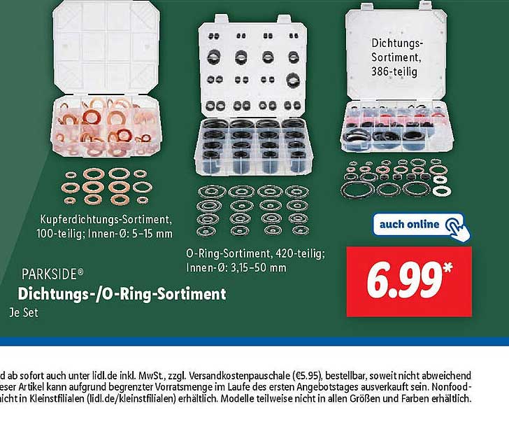 Sehen Sie sich jetzt das PARKSIDE® Dichtungs-/O-Ring-Sortiment Angebot im Lidl Prospekt an. Dieses Angebot ist gültig von 05.08.2024 bis 10.08.2024.