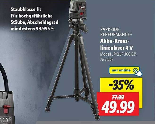 Sehen Sie sich das Parkside Performance® Akku-Kreuzlinienlaser 4 V Angebot bei Lidl an! Dieses fantastische Angebot ist jetzt im neuesten Lidl Prospekt verfügbar. Nutzen Sie diese Chance und sparen Sie viel bei Ihrem Einkauf.