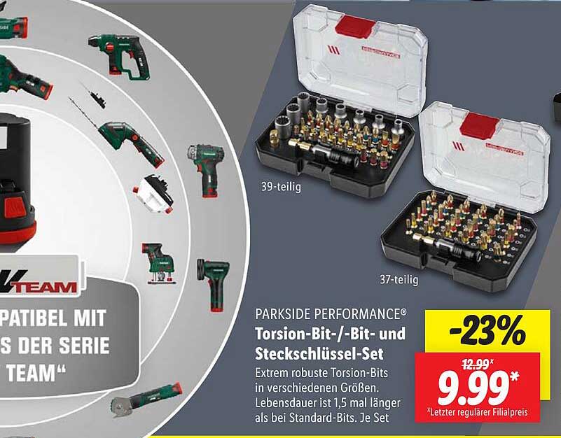 Sehen Sie sich jetzt das PARKSIDE PERFORMANCE® Torsion-Bit/-Bit- und Steckschlüssel-Set Angebot im Lidl Prospekt an. Dieses Angebot ist gültig von 23.09.2024 bis 28.09.2024.