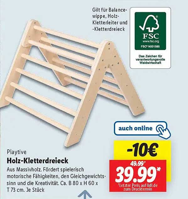 Sehen Sie sich das Playtive Holz-Kletterdreieck Angebot bei Lidl an! Dieses fantastische Angebot ist jetzt im neuesten Lidl Prospekt verfügbar. Nutzen Sie diese Chance und sparen Sie viel bei Ihrem Einkauf.