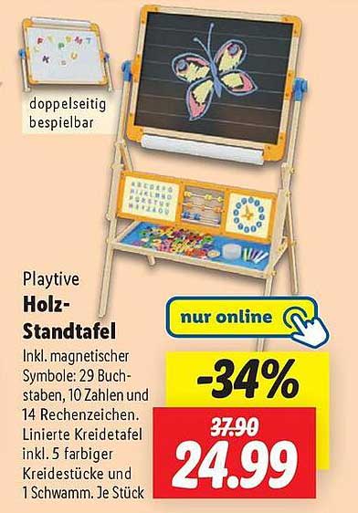 Die Playtive Holz-Standtafel bietet Kindern eine ideale Möglichkeit, ihre Kreativität und Lernfähigkeiten spielerisch zu entwickeln. Mit dieser ganz besonderen Standtafel wird das Lernen zum Vergnügen! Vom 31. März bis 5. April 2025 können Sie dieses tolle Angebot online entdecken und Ihrer Familie ein Stück Bildung und Spaß nach Hause holen.