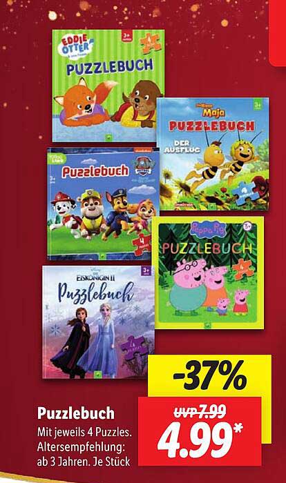 Entdecken Sie das großartige Puzzlebuch Angebot im neuesten Lidl Prospekt. Neben diesem Angebot finden Sie noch viele weitere attraktive Rabatte. Sie können das Puzzlebuch einfach online über die Lidl Website bestellen oder in einem Geschäft in Ihrer Nähe kaufen.