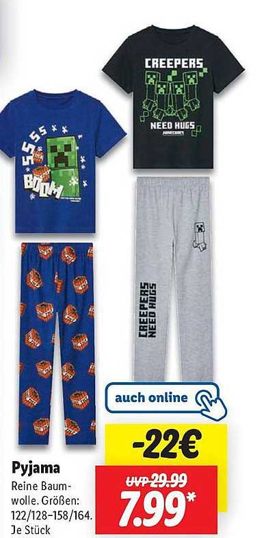 Sehen Sie sich jetzt das Pyjama für Kinder mit coolen Minecraft Motiven Angebot im Lidl Prospekt an. Dieses Angebot ist gültig von 31.03.2025 bis 05.04.2025.
