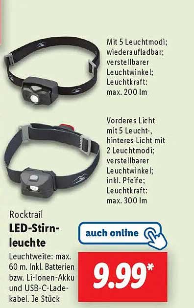 Sehen Sie sich das Rocktrail Led-Stirnleuchte Angebot bei Lidl an! Dieses fantastische Angebot ist jetzt im neuesten Lidl Prospekt verfügbar. Nutzen Sie diese Chance und sparen Sie viel bei Ihrem Einkauf.