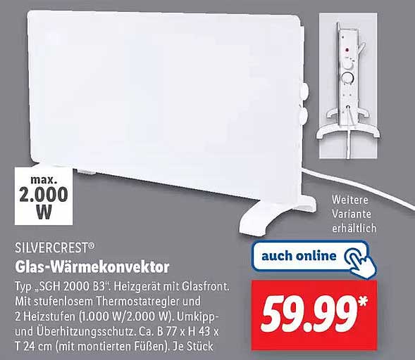 Entdecken Sie das großartige Silvercrest® Glas-Wärmekonvektor Angebot im neuesten Lidl Prospekt. Neben diesem Angebot finden Sie noch viele weitere attraktive Rabatte. Sie können das Silvercrest® Glas-Wärmekonvektor einfach online über die Lidl Website bestellen oder in einem Geschäft in Ihrer Nähe kaufen.