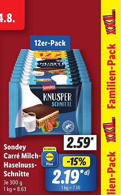 Sehen Sie sich jetzt das Sondey Knusper Schnitte Angebot im Lidl Prospekt an. Dieses Angebot ist gültig von 19.08.2024 bis 24.08.2024.
