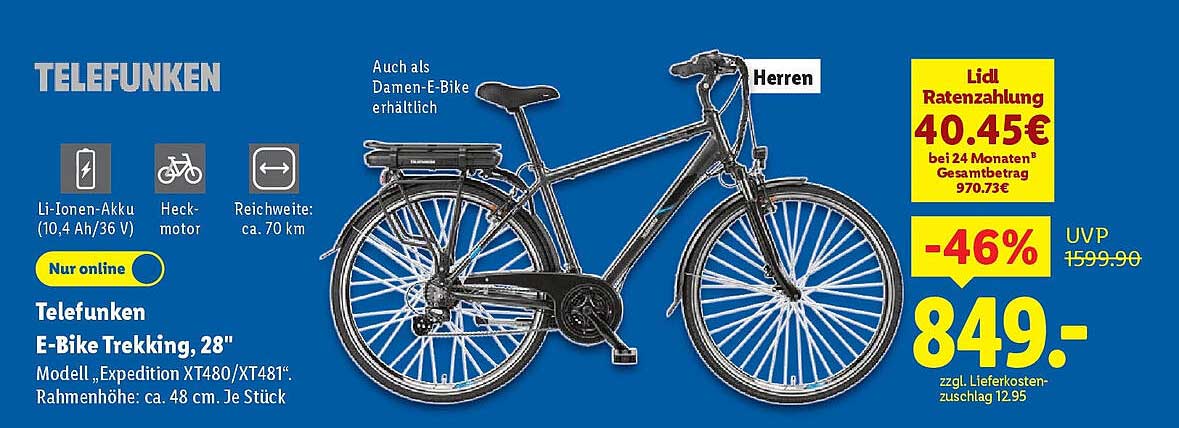 Sehen Sie sich jetzt das Telefunken E-Bike Trekking, 28" Angebot im Lidl Prospekt an. Dieses Angebot ist gültig von 01.09.2025 bis 07.09.2025.