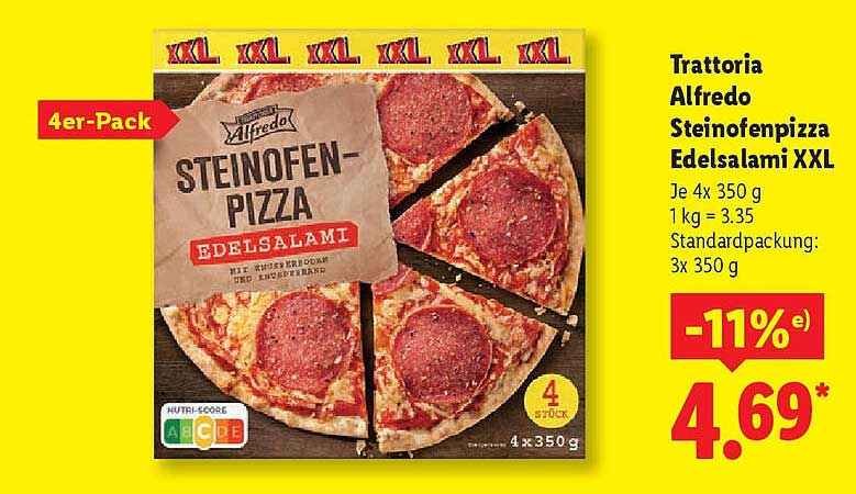 Sehen Sie sich jetzt das Trattoria Alfredo Steinofenpizza Edelsalami XXL 4er-Pack Angebot im Lidl Prospekt an. Dieses Angebot ist gültig von 29.09.2025 bis 04.10.2025.