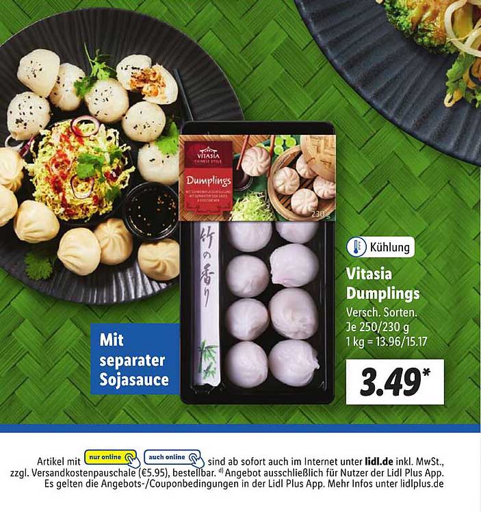 Sehen Sie sich das Vitasia Dumplings Angebot bei Lidl an! Dieses fantastische Angebot ist jetzt im neuesten Lidl Prospekt verfügbar. Nutzen Sie diese Chance und sparen Sie viel bei Ihrem Einkauf.