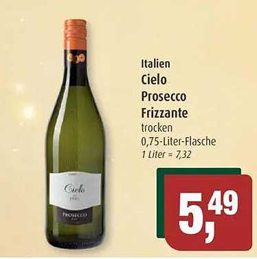 Sehen Sie sich das Cielo Prosecco Frizzante Angebot bei Markant an! Dieses fantastische Angebot ist jetzt im neuesten Markant Prospekt verfügbar. Nutzen Sie diese Chance und sparen Sie viel bei Ihrem Einkauf.