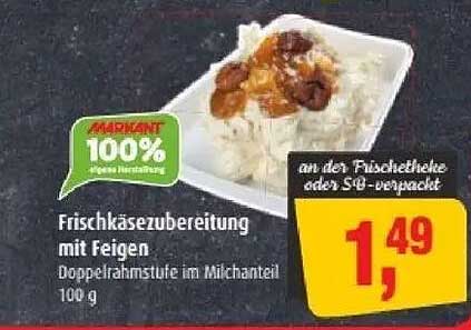 Entdecken Sie die köstliche Frischkäsezubereitung mit Feigen aus dem Markant-Prospekt! Dieses Produkt vereint cremigen Frischkäse mit süßen Feigen und ist perfekt für alle, die auf der Suche nach einer schmackhaften Ergänzung zu ihren Gerichten sind. Gleichzeitig ist es eine gesunde Wahl, die Ihrem Frühstück oder Snack den besonderen Kick verleiht. Gültig vom 13. Oktober bis zum 18. Oktober 2025, sollten Sie sich dieses Angebot nicht entgehen lassen!