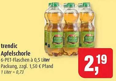 Sehen Sie sich jetzt das trendic Apfelschorle 6-PET-Flaschen à 0,5 Liter Angebot im Markant Prospekt an. Dieses Angebot ist gültig von 16.06.2025 bis 21.06.2025.