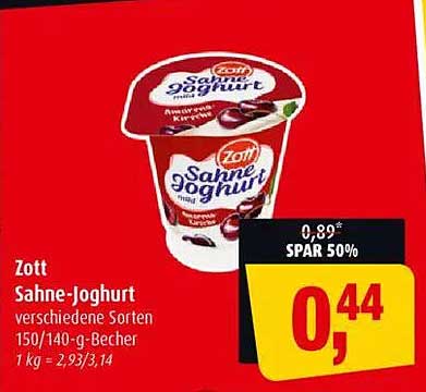 Die Zott Sahne-Joghurts bestehen aus hochwertigen Zutaten. Der Joghurt ist im 150/140-g-Becher erhältlich und schmeckt sehr frisch und natürlich. Mit einem Preis pro Kilogramm von lediglich 2,93 € bis 3,14 € stellt dieses Produkt nicht nur in Bezug auf den Geschmack, sondern auch die Qualität eine gute Wahl dar.