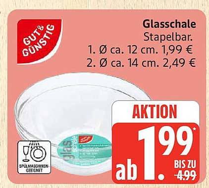 Entdecken Sie die praktische Glasschale von Gut & Günstig, die nicht nur durch ihr modernes Design überzeugt, sondern auch durch ihre Vielseitigkeit. Ob für Salate, Snacks oder als dekorativer Behälter für Obst – diese Schale ist ein absolutes Must-have in jeder Küche. Für nur 1,99 € (ab 21. September bis 27. September) erhalten Sie ein hochwertiges Produkt, das in keinem Haushalt fehlen sollte.