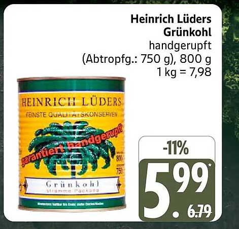 Mit einem Preis von nur 5,99 € im Vergleich zum regulären Preis von 6,79 € sparen Sie hier satte 11%. So genießen Sie nicht nur frischen Grünkohl, sondern tun auch Ihrem Geldbeutel etwas Gutes. Ein echtes Schnäppchen, das in keiner Küche fehlen sollte.