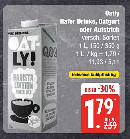 Sehen Sie sich jetzt das Oatly Hafer Drinks, Oatgurt oder Aufstrich Angebot im Marktkauf Prospekt an. Dieses Angebot ist gültig von 13.10.2024 bis 19.10.2024.
