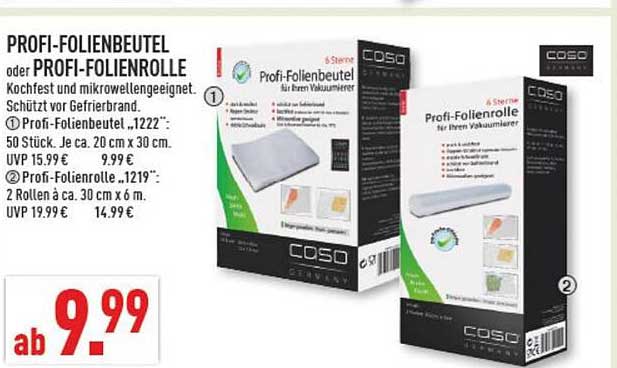 Aktuell erhalten Sie die PROFI-FOLIENBEUTEL bereits ab 9,99 € (UVP 15,99 €) und die PROFI-FOLIENROLLE für 14,99 € (UVP 19,99 €). Das sind deutliche Ersparnisse, die Ihr Haushaltsbudget schonen und Ihnen helfen, Ihre Lebensmittel kosteneffizient frisch zu halten.