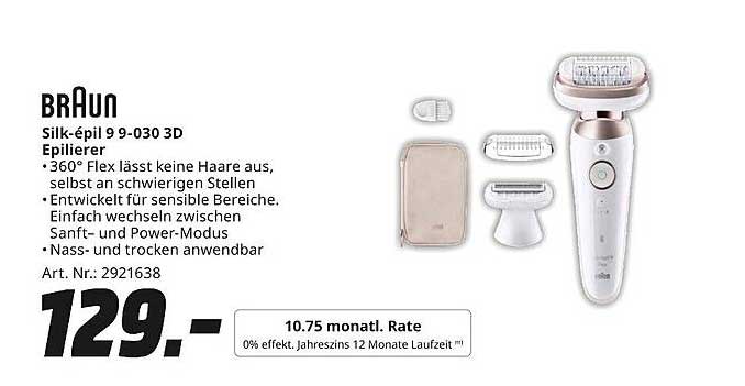 Sehen Sie sich jetzt das BRAUN Silk-épil 9 9-030 3D Epilierer Angebot im MediaMarkt Prospekt an. Dieses Angebot ist gültig von 07.07.2025 bis 19.07.2025.