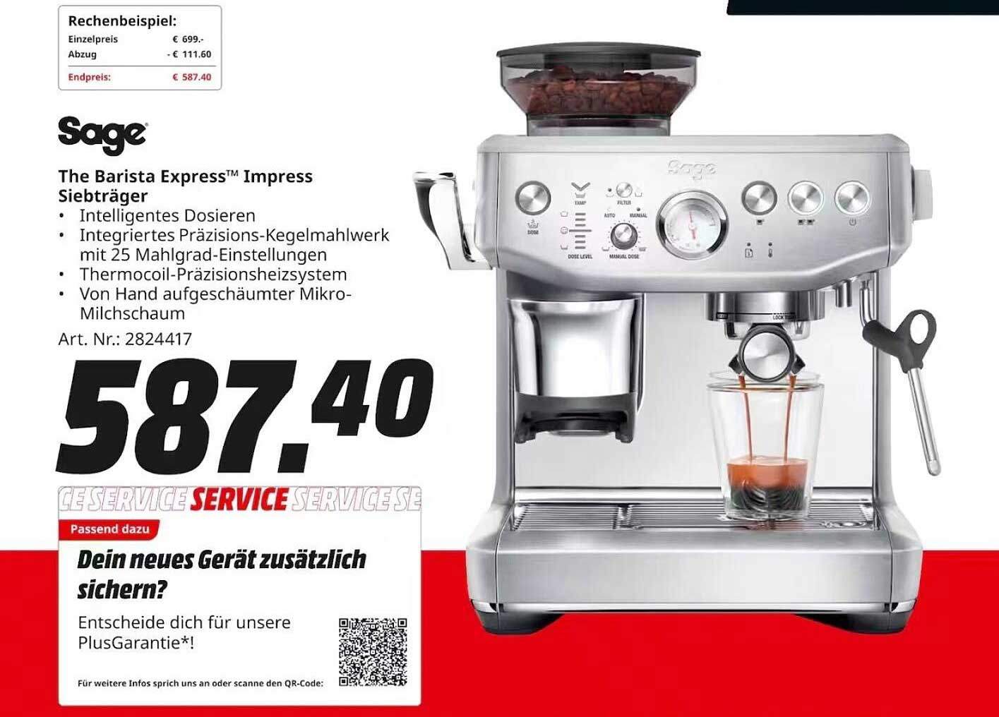 Sehen Sie sich jetzt das The Barista Express™ Impress Siebträger von Sage Angebot im MediaMarkt Prospekt an. Dieses Angebot ist gültig von 23.10.2025 bis 27.10.2025.