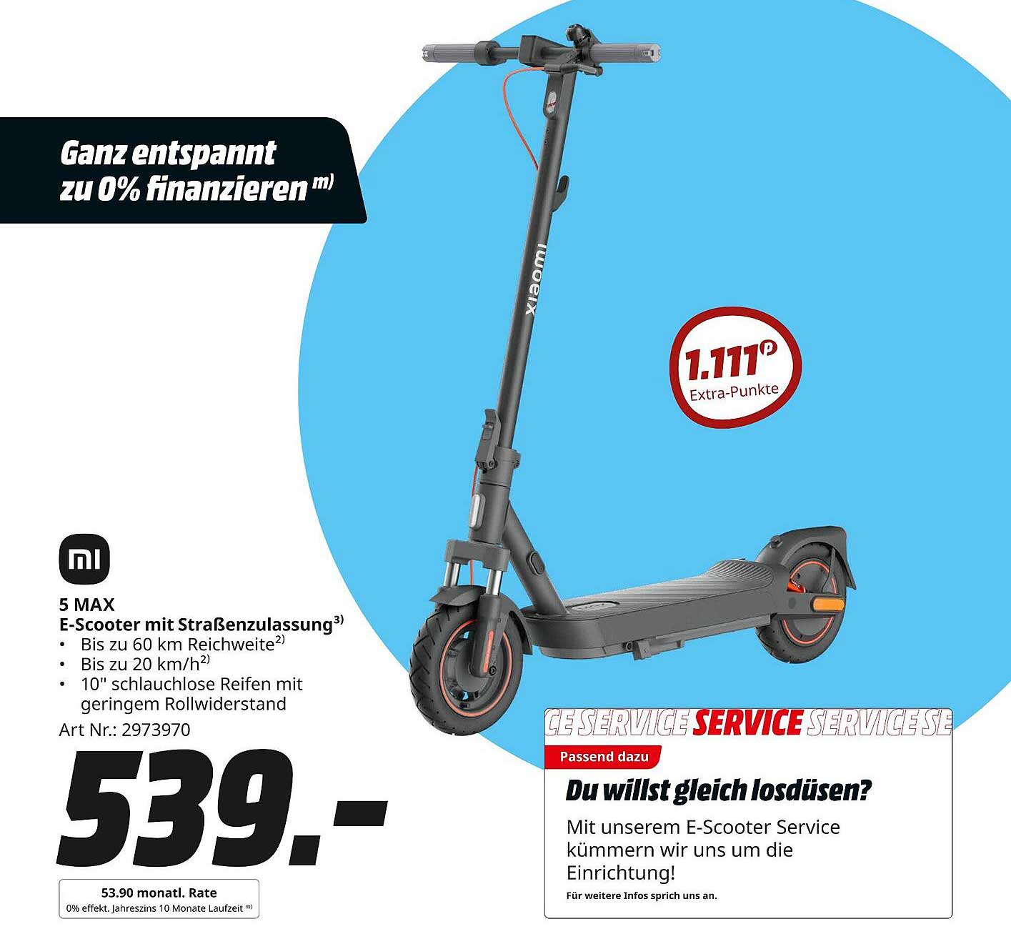 Sehen Sie sich jetzt das Xiaomi E-Scooter 5 MAX mit Straßenzulassung Angebot im MediaMarkt Prospekt an. Dieses Angebot ist gültig von 10.11.2025 bis 13.11.2025.
