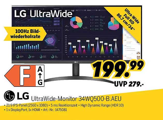 Sehen Sie sich jetzt das LG UltraWide-Monitor 34WQ500-B.AEU Angebot im MEDIMAX Prospekt an. Dieses Angebot ist gültig von 09.10.2025 bis 16.10.2025.