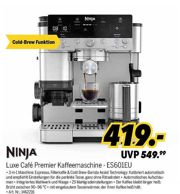 Sehen Sie sich jetzt das Ninja Luxe Café Premier Kaffeemaschine - ES601EU Angebot im MEDIMAX Prospekt an. Dieses Angebot ist gültig von 16.10.2025 bis 23.10.2025.