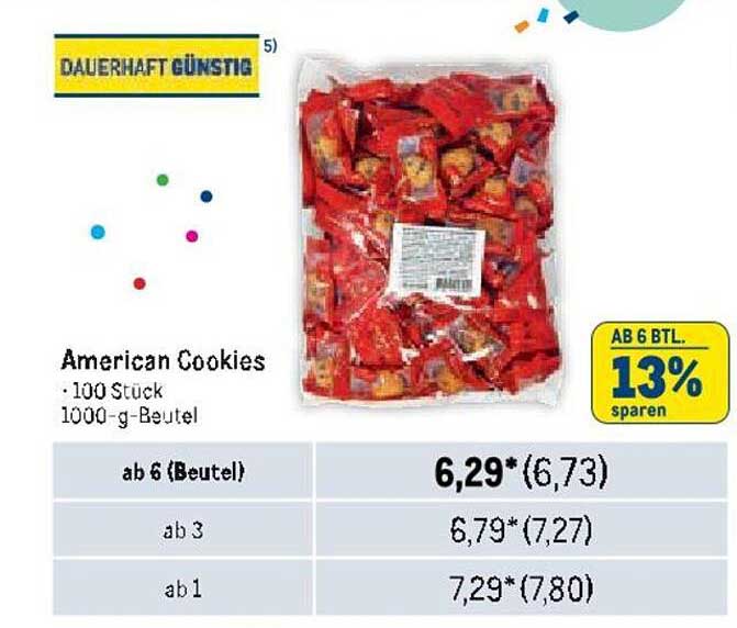 Sehen Sie sich das American Cookies Angebot bei METRO an! Dieses fantastische Angebot ist jetzt im neuesten METRO Prospekt verfügbar. Nutzen Sie diese Chance und sparen Sie viel bei Ihrem Einkauf.