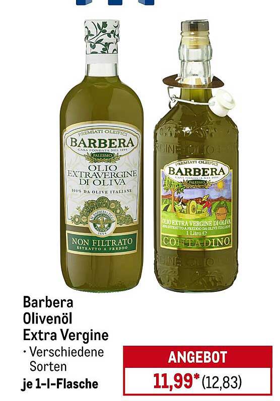 Sehen Sie sich jetzt das Barbera Olivenöl Extra Vergine - Verschiedene Sorten Angebot im METRO Prospekt an. Dieses Angebot ist gültig von 22.09.2025 bis 28.09.2025.