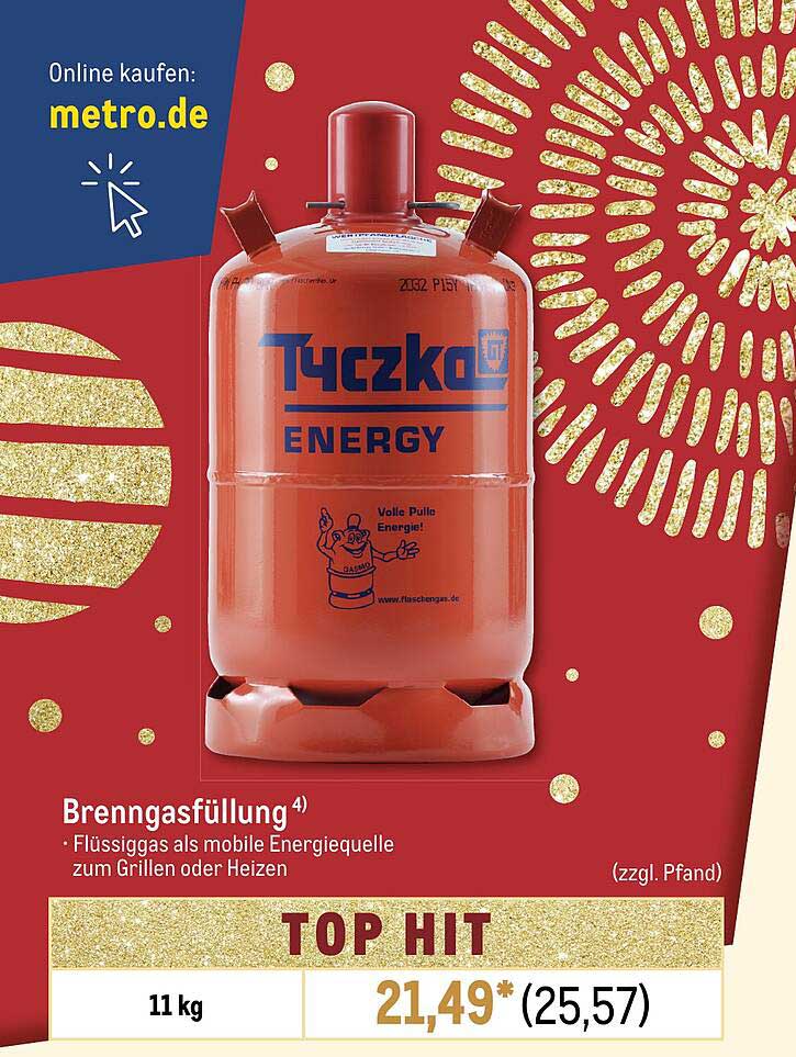 Sehen Sie sich jetzt das Brenn gasfüllung Angebot im METRO Prospekt an. Dieses Angebot ist gültig von 28.11.2024 bis 04.12.2024.