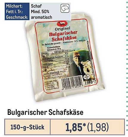 Möchten Sie sofort informiert werden, sobald das Bulgarischer Schafskäse im Angebot ist? Melden Sie sich für unsere Angebots-Benachrichtigungen an. So erhalten Sie eine Benachrichtigung, sobald das Produkt zu einem günstigen Preis verfügbar ist.