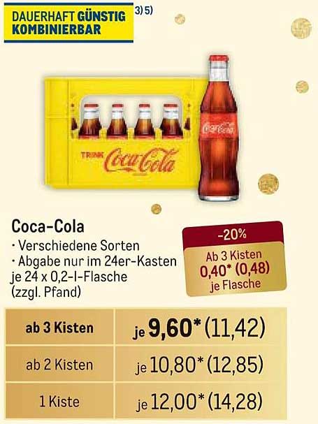 Sehen Sie sich das Coca-Cola Angebot bei METRO an! Dieses fantastische Angebot ist jetzt im neuesten METRO Prospekt verfügbar. Nutzen Sie diese Chance und sparen Sie viel bei Ihrem Einkauf.