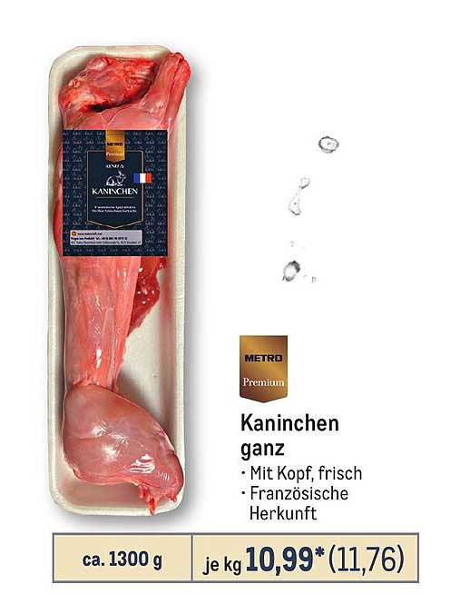 Sehen Sie sich jetzt das Kaninchenschenkel ganz, frisch, französische Herkunft Angebot im METRO Prospekt an. Dieses Angebot ist gültig von 27.03.2025 bis 08.04.2025.