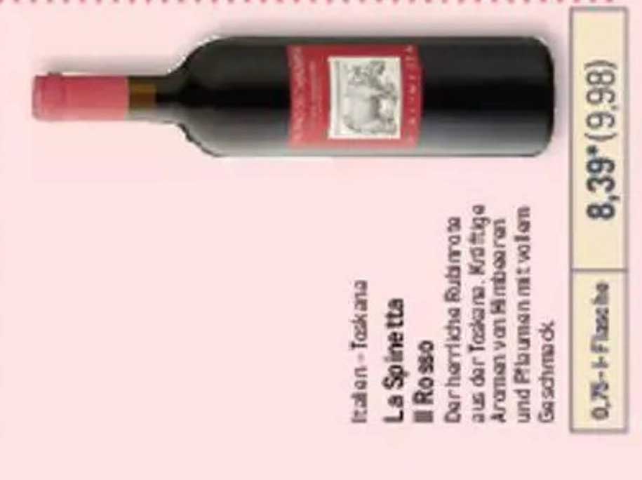 Möchten Sie sofort informiert werden, sobald das La Spinetta Rosato im Angebot ist? Melden Sie sich für unsere Angebots-Benachrichtigungen an. So erhalten Sie eine Benachrichtigung, sobald das Produkt zu einem günstigen Preis verfügbar ist.