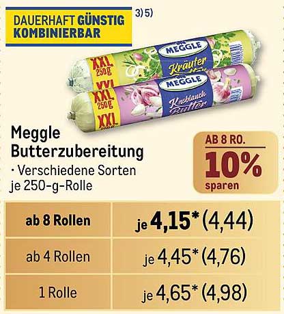 Sehen Sie sich das Meggle Butterzubereitung Angebot bei METRO an! Dieses fantastische Angebot ist jetzt im neuesten METRO Prospekt verfügbar. Nutzen Sie diese Chance und sparen Sie viel bei Ihrem Einkauf.