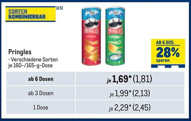 Sehen Sie sich das Pringles Angebot bei METRO an! Dieses fantastische Angebot ist jetzt im neuesten METRO Prospekt verfügbar. Nutzen Sie diese Chance und sparen Sie viel bei Ihrem Einkauf.
