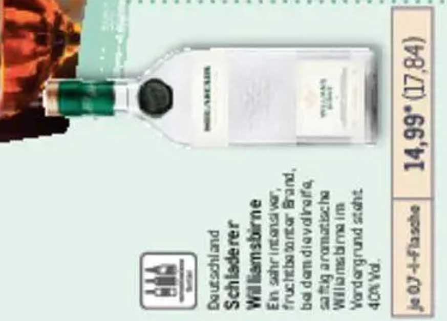 Entdecken Sie das großartige Schladerer Williamsbirne Angebot im neuesten METRO Prospekt. Neben diesem Angebot finden Sie noch viele weitere attraktive Rabatte. Sie können das Schladerer Williamsbirne einfach online über die METRO Website bestellen oder in einem Geschäft in Ihrer Nähe kaufen.