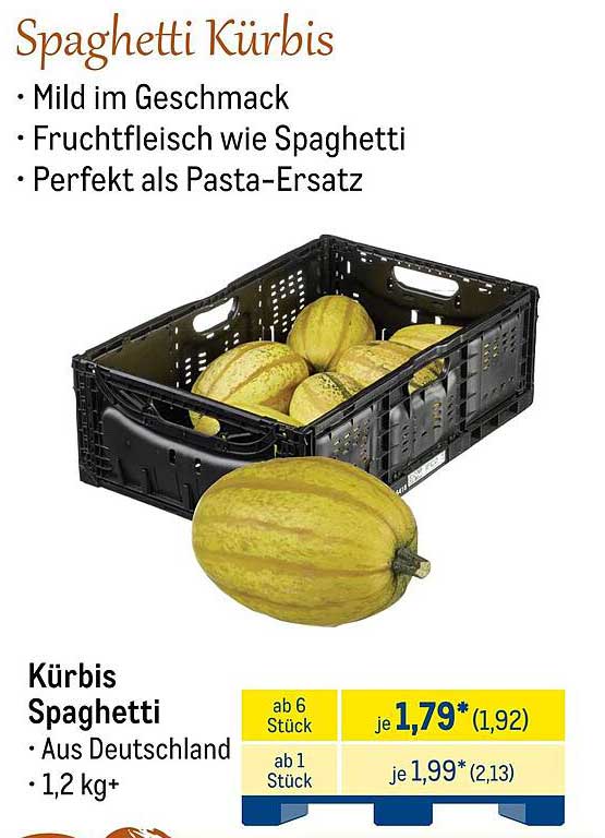 Schauen Sie sich weitere tolle Angebote auf dieser Seite an und profitieren Sie von den zahlreichen Schnäppchen, die METRO zu bieten hat. Der Spaghetti Kürbis ist nur eines von vielen Highlight-Produkten, die Ihnen helfen können, Ihre Ernährungsweise zu verbessern und abwechslungsreiche Gerichte zu kreieren.