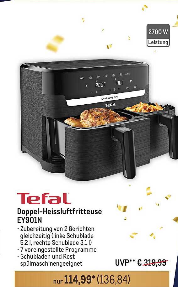 Tefal Doppel-Heissluftfritteuse Ey901N Angebot bei METRO