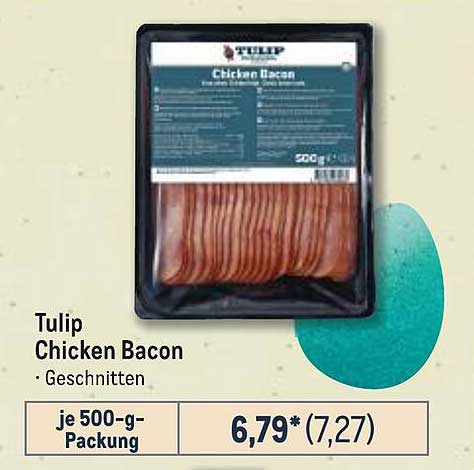 Sehen Sie sich jetzt das Tulip Chicken Bacon – Geschitten, je 500-g-Packung Angebot im METRO Prospekt an. Dieses Angebot ist gültig von 10.04.2025 bis 23.04.2025.