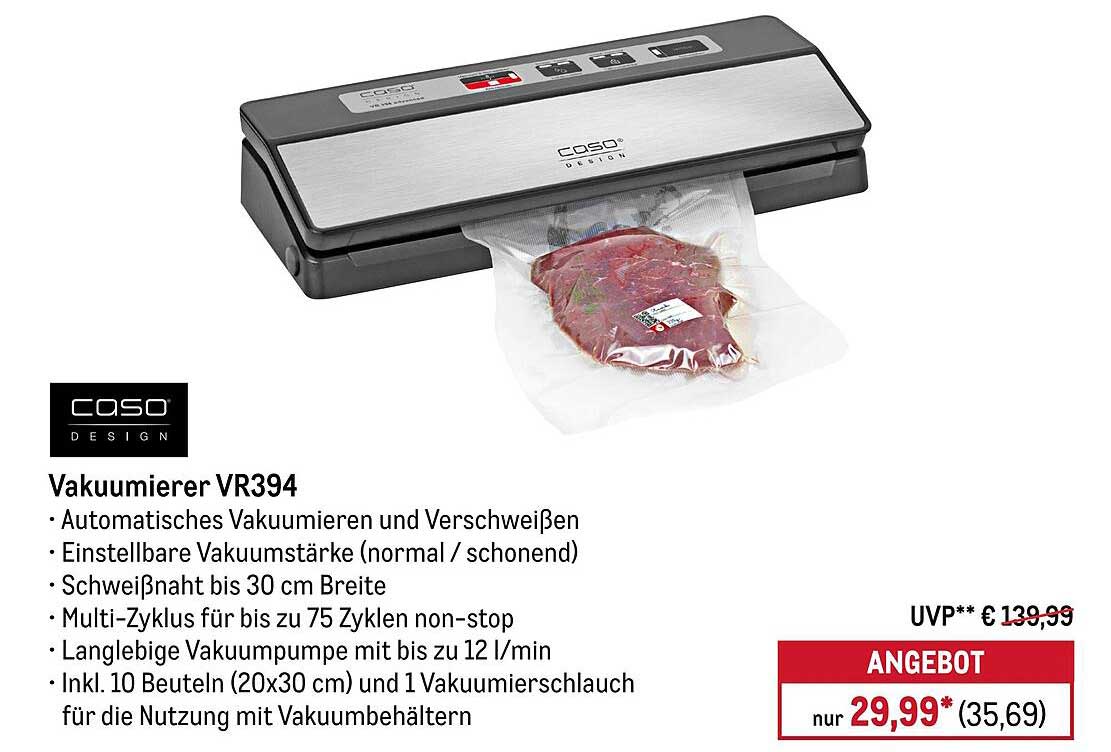 Sehen Sie sich jetzt das Vakuumierer VR394 von Caso Design Angebot im METRO Prospekt an. Dieses Angebot ist gültig von 13.10.2025 bis 19.10.2025.