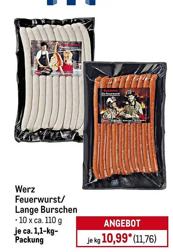 Sehen Sie sich jetzt das Werz Feuerwurst / Lange Burschen - 10 x ca. 110 g Angebot im METRO Prospekt an. Dieses Angebot ist gültig von 21.04.2025 bis 26.04.2025.