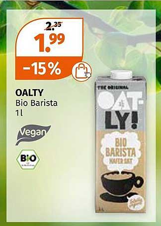 Sehen Sie sich das Oatly Bio Barista 1L Angebot bei Müller an! Dieses fantastische Angebot ist jetzt im neuesten Müller Prospekt verfügbar. Nutzen Sie diese Chance und sparen Sie viel bei Ihrem Einkauf.