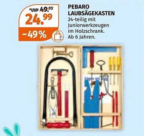 Sehen Sie sich jetzt das PEBARO LAUBSÄGEKASTEN 24-teilig mit Juniorwerkzeugen im Holzschrank Angebot im Müller Prospekt an. Dieses Angebot ist gültig von 06.04.2025 bis 19.04.2025.