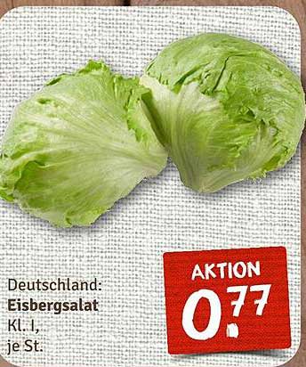 Mit einem Aktionspreis von nur 0,77 € pro Stück ist dieses Angebot nicht nur preiswert, sondern auch eine echte Ersparnis. Normalerweise liegt der Preis für frischen Eisbergsalat deutlich höher, daher sollten Sie sich diese Gelegenheit nicht entgehen lassen. Genießen Sie frische Lebensmittel zu einem unschlagbaren Preis!