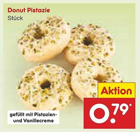 Profitieren Sie jetzt von diesem sensationellen Angebot! Der reguläre Preis für einen Donut Pistazie liegt höher, aber aktuell können Sie ihn für nur 0,79 Euro ergattern. Das ist eine tolle Ersparnis für alle, die sich etwas Süßes gönnen möchten, ohne das Budget zu sprengen.