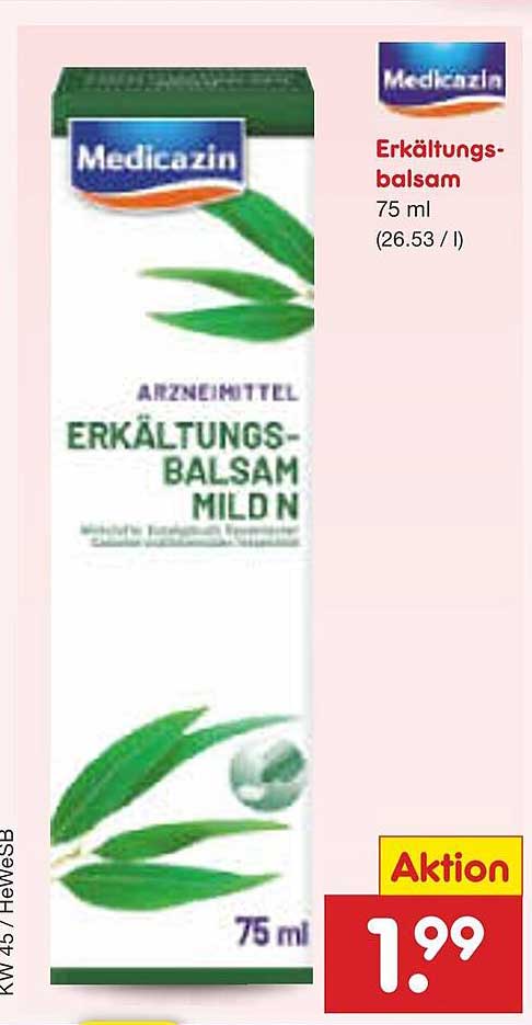 Sehen Sie sich jetzt das Erkältungsbalsam Mild N 75 ml Angebot im Netto Marken-Discount Prospekt an. Dieses Angebot ist gültig von 03.11.2025 bis 08.11.2025.