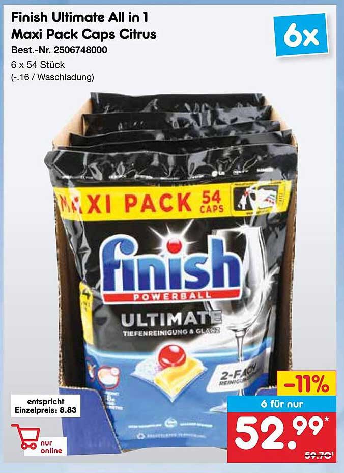 Sehen Sie sich jetzt das Finish Ultimate All in 1 Maxi Pack Caps Citrus Angebot im Netto Marken-Discount Prospekt an. Dieses Angebot ist gültig von 01.02.2025 bis 01.03.2025.