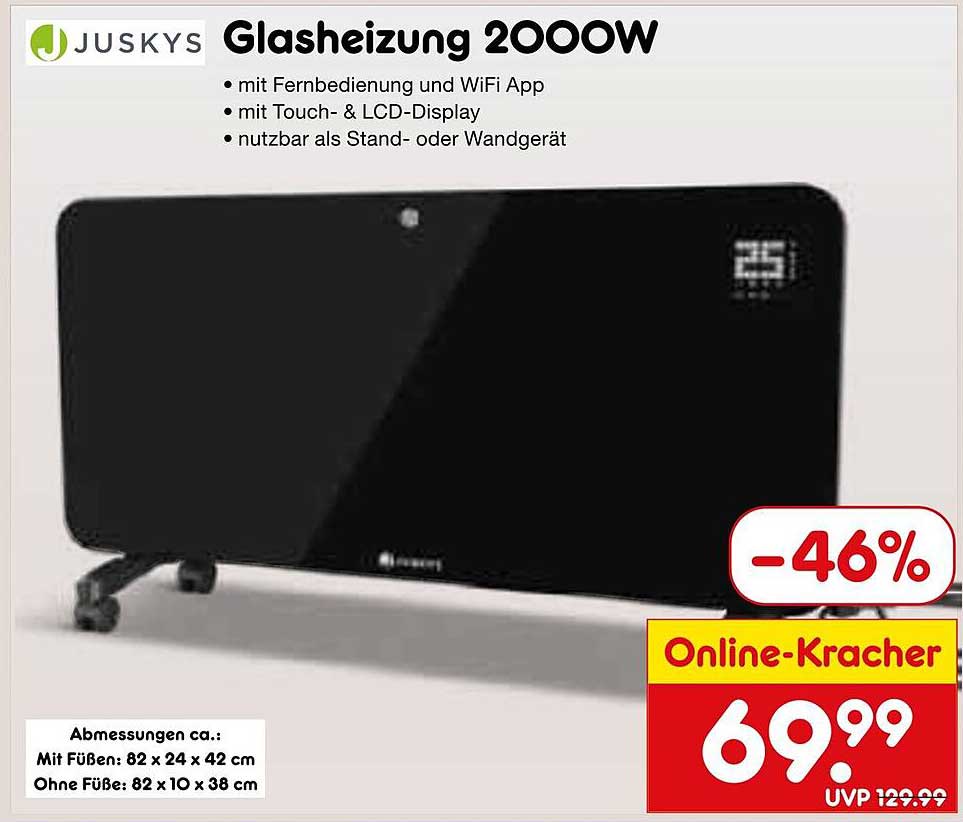 Sehen Sie sich jetzt das JUSKYS Glasheizung 2000W Angebot im Netto Marken-Discount Prospekt an. Dieses Angebot ist gültig von 27.10.2025 bis 01.11.2025.