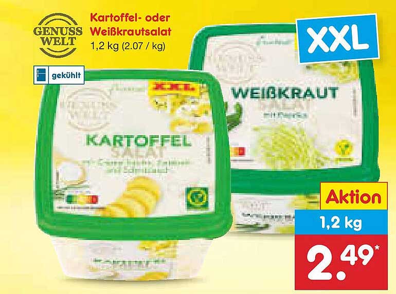 Sehen Sie sich jetzt das Kartoffel- oder Weißkrautsalat Angebot im Netto Marken-Discount Prospekt an. Dieses Angebot ist gültig von 27.10.2024 bis 01.11.2024.
